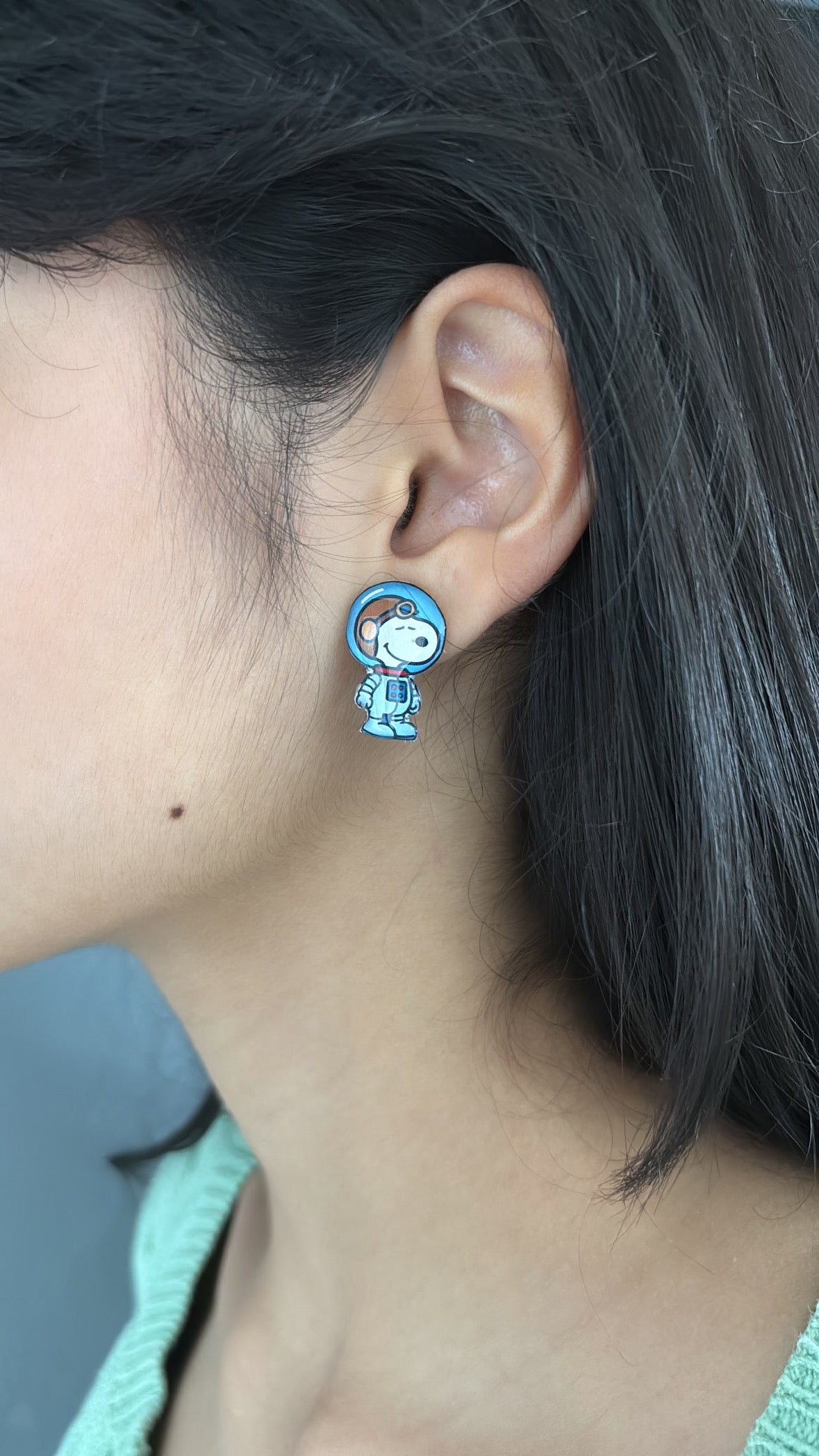 Descubre la magia del espacio con estos aretes de Snoopy astronauta. Su diseño único captura la aventura y la imaginación del famoso personaje en su traje espacial, ideal para quienes buscan un accesorio original y lleno de personalidad. Perfectos para destacar tu estilo con un toque divertido y creativo que no pasará desapercibido.